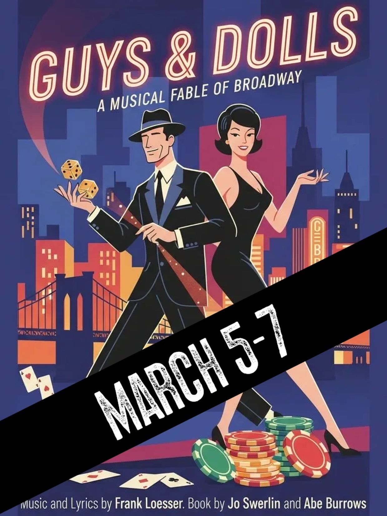 Guys & Dolls Jr. is a fast-paced, feel-good musical comedy packed with big personalities, catchy songs, and classic Broadway charm! Follow high-rolling gamblers, showstopping dancers, and unexpected romance in this fun, family-friendly production full of laughs and heart.